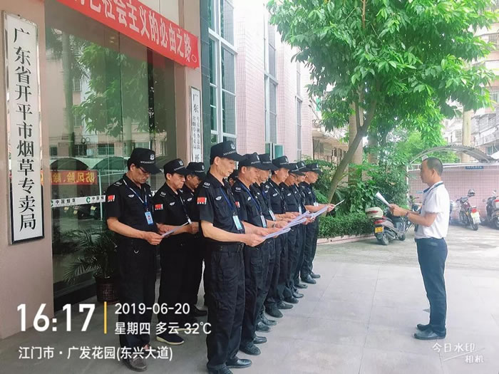 受客戶廣東煙草江門有限公司的邀請,國盾特衛保安集團組織開展“安全生產月”專題培訓活動。切實發現并消除各類安全隱患,進一步加強安全生產工作,全面落實安全生產責任,全力維護客戶和員工的人身及財產安全,國盾特衛保安集團結合自身實際,專門制定了相關工作方案,對組織機構、人員配置及工作安排作出了具體部署,各項工作順利開展,成效顯著。