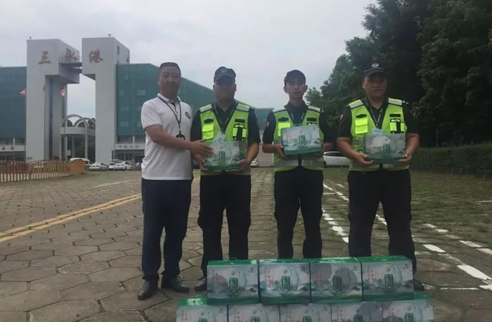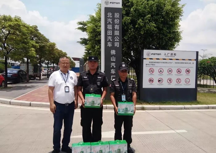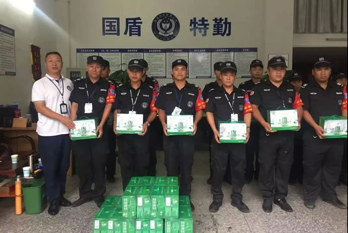 按照公司的統(tǒng)一部署,2019年7月1-6日,一連六天,公司領(lǐng)導班子成員分別到集團旗下六個保安部各分隊駐勤崗點對堅守在工作崗位上的一線隊員進行了慰問。每到一處,他們都將購置的清涼飲料、防暑藥物、風扇等防暑降溫用品親自遞到隊員手上,并親切的與隊員們進行交談,了解隊員的夏季工裝是否舒適、透氣、工作環(huán)境是否需要添置通風設(shè)施和降溫設(shè)備等。同時叮囑大家要合理安排巡邏頻率,及時補充水分,既要做好本職工作,又要注意身體和安全。