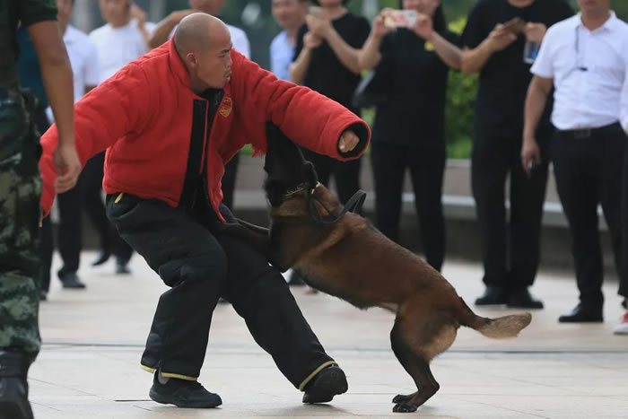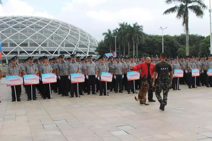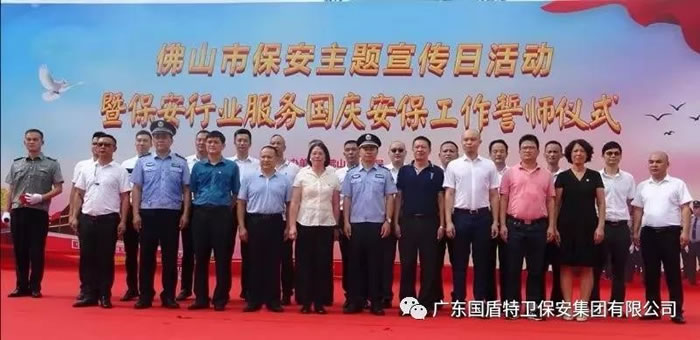 為了迎接中華人民共和國(guó)70周年華誕,號(hào)召全市保安積極行動(dòng)起來(lái),7月24日上午,佛山市保安服務(wù)行業(yè)在禪城區(qū)嶺南明珠電視塔廣場(chǎng),與全國(guó)、全省同步,舉行了隆重的聲勢(shì)浩大的“佛山市保安主題宣傳日暨保安行業(yè)服務(wù)國(guó)慶安保誓師儀式”。廣東國(guó)盾特衛(wèi)保安集團(tuán)有限公司董事長(zhǎng)夏學(xué)樹率領(lǐng)其集團(tuán)公司方隊(duì)全程參加,在技防操演中,國(guó)盾特衛(wèi)保安集團(tuán)特種犬護(hù)衛(wèi)隊(duì)威武亮相,成為全場(chǎng)亮點(diǎn),受到各方好評(píng)。