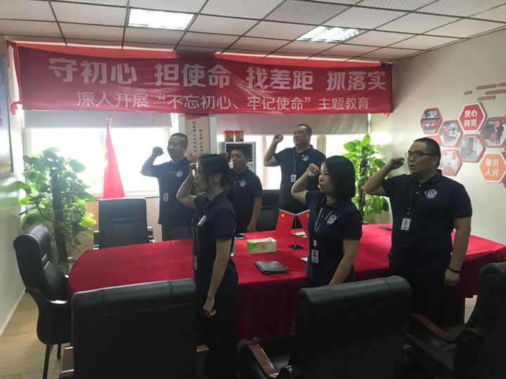 座談交流會上,全體黨員面對鮮艷的黨旗進行了莊嚴宣誓,重溫入黨誓詞,牢記初心使命,共同學習了黨的光輝歷程。 黨支部副書記鄭紅戰向與會人員介紹了近年來集團公司黨支部工作建設情況,在總結成效的同時,注重分析問題,查找不足,同時緊密結合今年兩會精神的學習貫徹,進一步明確工作方向。以黨建引領,以鞏固深化“不忘初心、牢記使命”主題教育為抓手,認真學習黨章、遵守黨紀,切實轉變作風,為安保事業高質量發展作出貢獻。