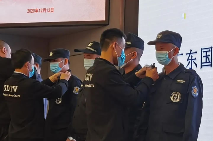 為了規范各級基層保安管理人員的內部結構,使保安隊伍有等級區分,激發保安基層管理人員的工作熱情,有利于保安服務工作更好的開展,讓有能之人有發展空間。集團公司領導班子分別對大隊長、中隊長、分隊長進行授銜儀式,為授級人員更換肩章、胸章,氣氛莊嚴而熱烈。