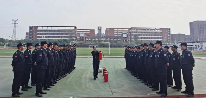 會議結束后,全體各級基層管理人員在操場上著裝整齊列隊完畢。首先,教官組織隊員進行軍事基本動作訓練,隊員都能做到整齊劃一;其次以消防安全“一懂三會”和“四個能力”為框架,對現場保安管理人員日常火災防范、火災處置對策、疏散人員逃生自救、消防設施設備的維護保養等消防安全知識進行講解,還現場演示了正確使用滅火器滅火和拋撒水帶連接等技能,并組織人員現場進行操作,取得了良好的預期效果。