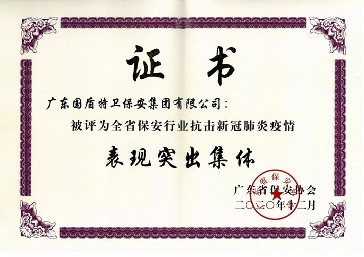 在云東海街道黨工委正確領導下,集團公司充分發揮黨建引領作用,注重在加強黨支部戰斗堡壘作用,發揮黨員的先鋒模范作用上下功夫,先后被廣東省保安協會評為“突出表現集體”、佛山保安行業協會授予“抗疫先進單位”、并榮獲“三水區五四紅旗團總支部”等榮譽稱號,集團黨支部書記夏學樹同志更被公安部通報表揚為“全國抗擊疫情表現突出保安個人”。