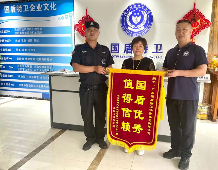 一直以來(lái),國(guó)盾特衛(wèi)保安集團(tuán)領(lǐng)導(dǎo)班子高度重視對(duì)基層保安隊(duì)員的培訓(xùn)和綜合素質(zhì)提升,著重抓好基層保安服務(wù)隊(duì)員的職業(yè)形象以及在崗紀(jì)律,從而打造保安服務(wù)品牌。近期,集團(tuán)公司多名保安員受到客戶單位點(diǎn)贊并獲得錦旗,表達(dá)對(duì)駐點(diǎn)保安隊(duì)員高度負(fù)責(zé)、細(xì)致入微的服務(wù)的感謝。
