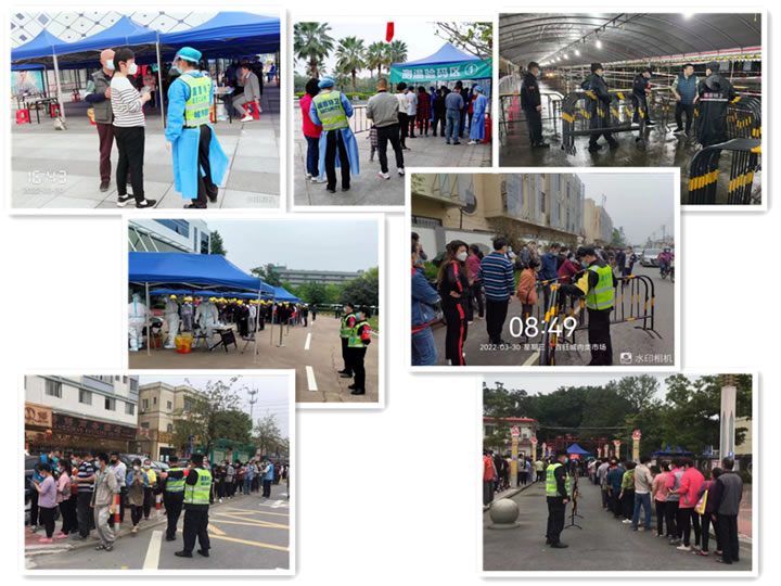 2月底以來,新冠疫情在全國多地呈復燃之勢,各地戰疫又進入一個新階段。3月27日夜,三水區在隔離管控的密接者中發現1例新冠病毒陽性感染者。這一則突如其來的消息打破了三水的平靜,導致部分片區居民的健康碼變黃,防疫形勢嚴峻。很多人市民擔心影響上班工作以及小朋友返校,紛紛連夜趕往各核酸檢測點排隊檢測,各醫院核酸檢測點人手不足檢測那么多人,一時間人滿為患。國盾特衛保安集團積極響應三水區政府部門應急防疫要求,火速調集各駐點隊員奔赴一線,協助并支援開展重點人員防控以及核酸檢測秩序維護。此次支援任務重、涉及面廣,隊員服從上級部門指揮,克服一切困難,不辜負群眾的期望,此次支援工作切實彰顯了國盾特衛人履職盡責、忠誠擔當的良好作風,得到有關部門和市民的好評。
