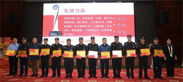 經(jīng)營會議結(jié)束后,集團(tuán)公司召開2023年度工作表彰會議暨迎新聯(lián)歡晚會,集團(tuán)公司各部門員工、分公司代表、各區(qū)域大隊(duì)長以及受表彰的分隊(duì)代表和優(yōu)秀保安員等180多人出席。