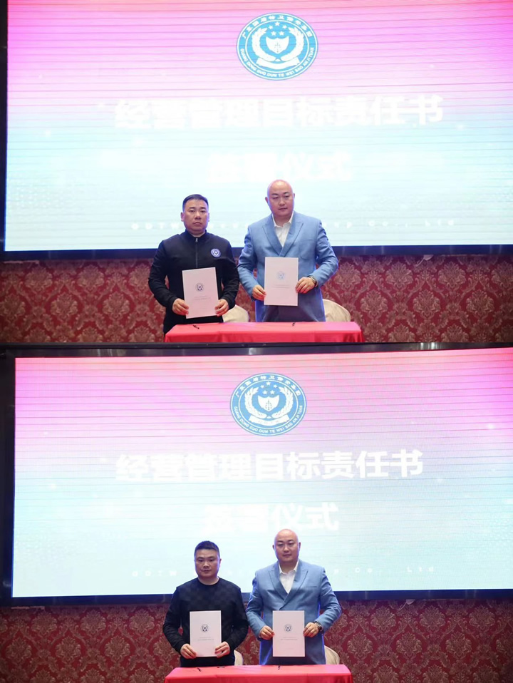 責(zé)任上肩,披荊斬棘。會議還舉行了2024年度經(jīng)營管理目標(biāo)責(zé)任書簽訂儀式。目標(biāo)責(zé)任書的簽訂,明確了2023年的奮斗目標(biāo)和發(fā)展方向,也表現(xiàn)了國盾特衛(wèi)人使命必達(dá)的決心與信心。
